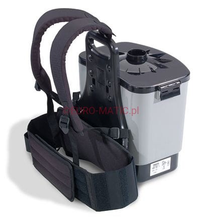 Długość kabla wynosi 10 metrów i pozwala na bezproblemowe manewrowanie. Odkurzacz mocowany jest na placach osoby sprzątającej za pomocą szelek oraz szerokiego pasa biodrowego. Dzięki temu ciężar odkurzacza rozłożony jest równomiernie i nie wywołuje uczucia dyskomfortu. System nośny jest miękki i przewiewny. Ręczny moduł kontrolny umożliwia włączanie i wyłączanie odkurzacza.