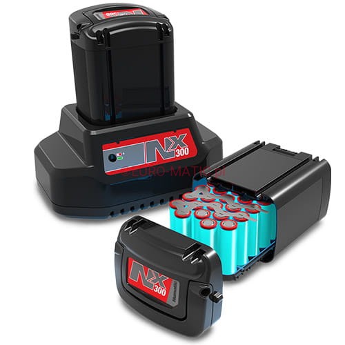 Urządzenie może pracować na pełnej mocy (Hi) lub w trybie energoszczędnym (Lo). Akumulator litowo-jonowy NX300 zapewnia odpowiednią wydajność. Czas pracy odkurzacza (w zależności od trybu) wynosi 80-50 minut. Pełny proces ładowania trwa 120 minut. Dostępne są wersje z jedną lub dwiema bateriami Li-Ion.